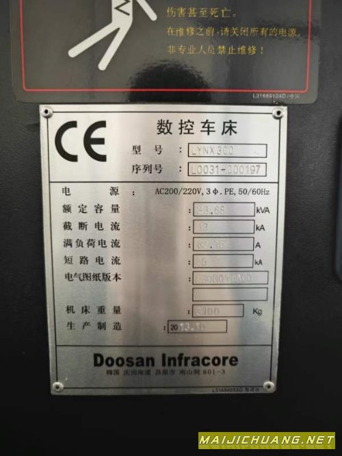 韩国原装进口斗山Lynx300数控车床,A2-8主轴配12寸液压卡盘,12工位伺服刀塔,主轴通孔86,回转直径651,车削直径450,车削长度765,带排屑机。 信息编号:S672702 |